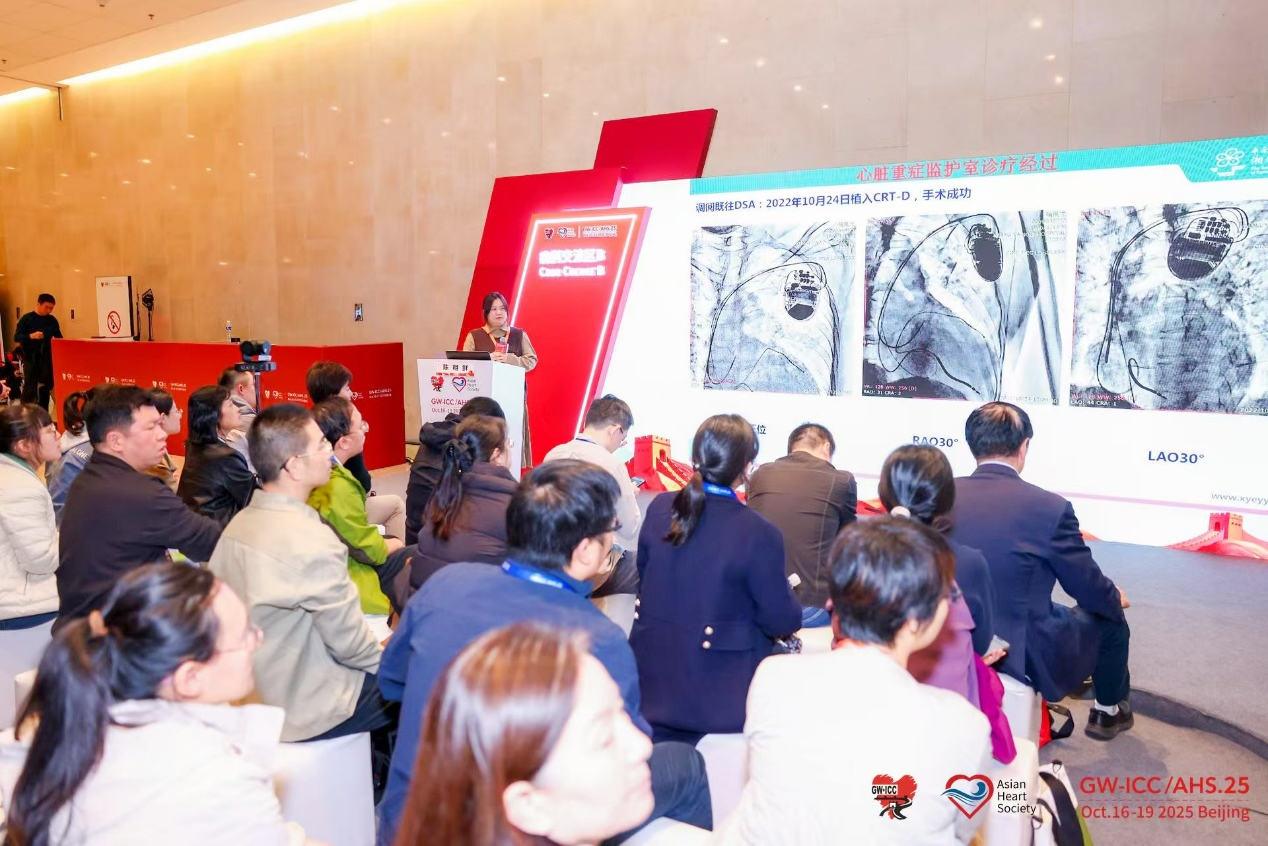 10月18日,在第36届长城心脏病学大会暨亚洲心脏大会2025“心律失常”专场上,中南大学湘雅二医院桂林医院心血管内科电生理团队代表金菁作了题为《CRT-D患者除颤电极穿孔的识别与处理》的病例汇报,向全国同行系统性地展示了该电生理团队在心脏器械并发症管理方面的临床能力、规范流程与团队实力。