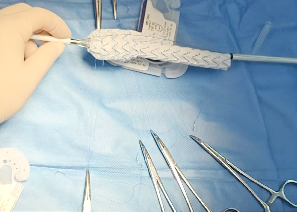 术中团队对支架进行精准的台上改造与开窗