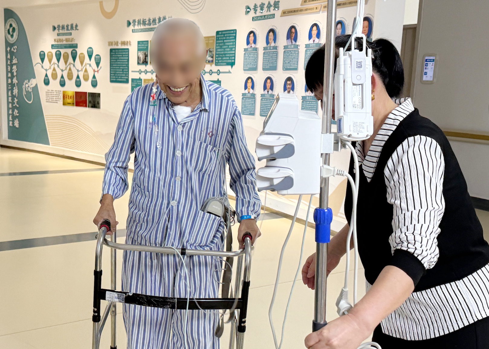 在医护人员的精心照料和家人的悉心陪伴下,李爷爷病情逐渐平稳。术后第五天,曙光终于降临——李爷爷成功拔除所有导管,精神状态逐渐好转。从床旁坐起到自主站立,再到慢慢在病房内行走,曾经的心衰症状彻底消散,病房里不再有痛苦的喘息,取而代之的是李爷爷健朗的身影和爽朗的笑声。