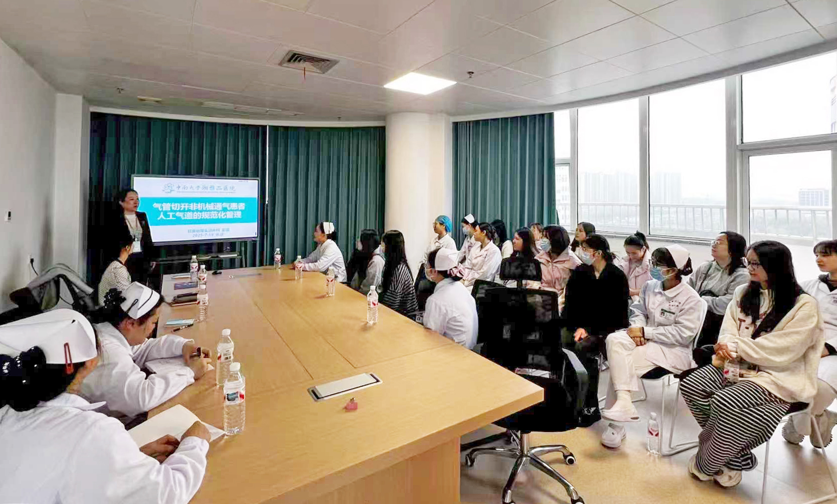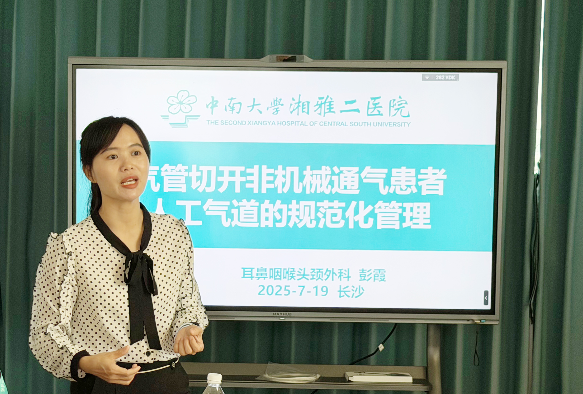 培训中,湘雅本部专家结合丰富的临床经验与典型案例,从气管切开非机械通气患者人工气道的评估、湿化护理、痰液引流、并发症预防及康复指导等方面,进行了系统而细致的讲解。培训内容紧密贴合临床实际,兼具理论高度与实践指导性,有效厘清了护理工作中的重点与难点。现场互动氛围热烈,参会人员积极提问,专家逐一耐心解答,解决了临床护理中的诸多困惑。