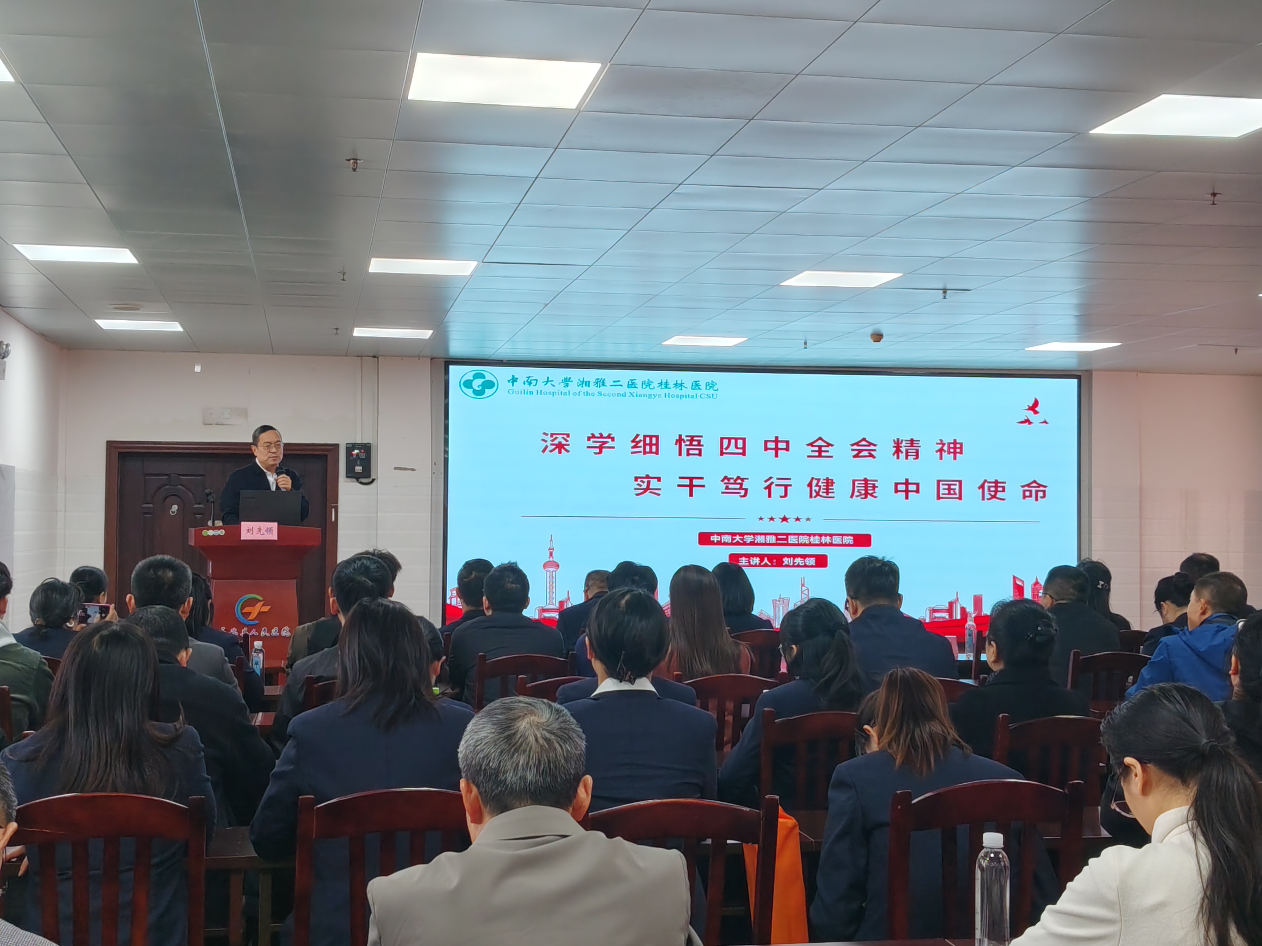 活动以中南大学湘雅二医院桂林医院党委书记刘先领围绕二十届四中全会精神专题党课宣讲拉开序幕;随后两家医院分别介绍自身发展概况与党建特色;在此基础上,双方“亮家底、摆需求”,真心诚意开展党业融合交流,同步穿插临床一线带教查房、病例讨论等活动。