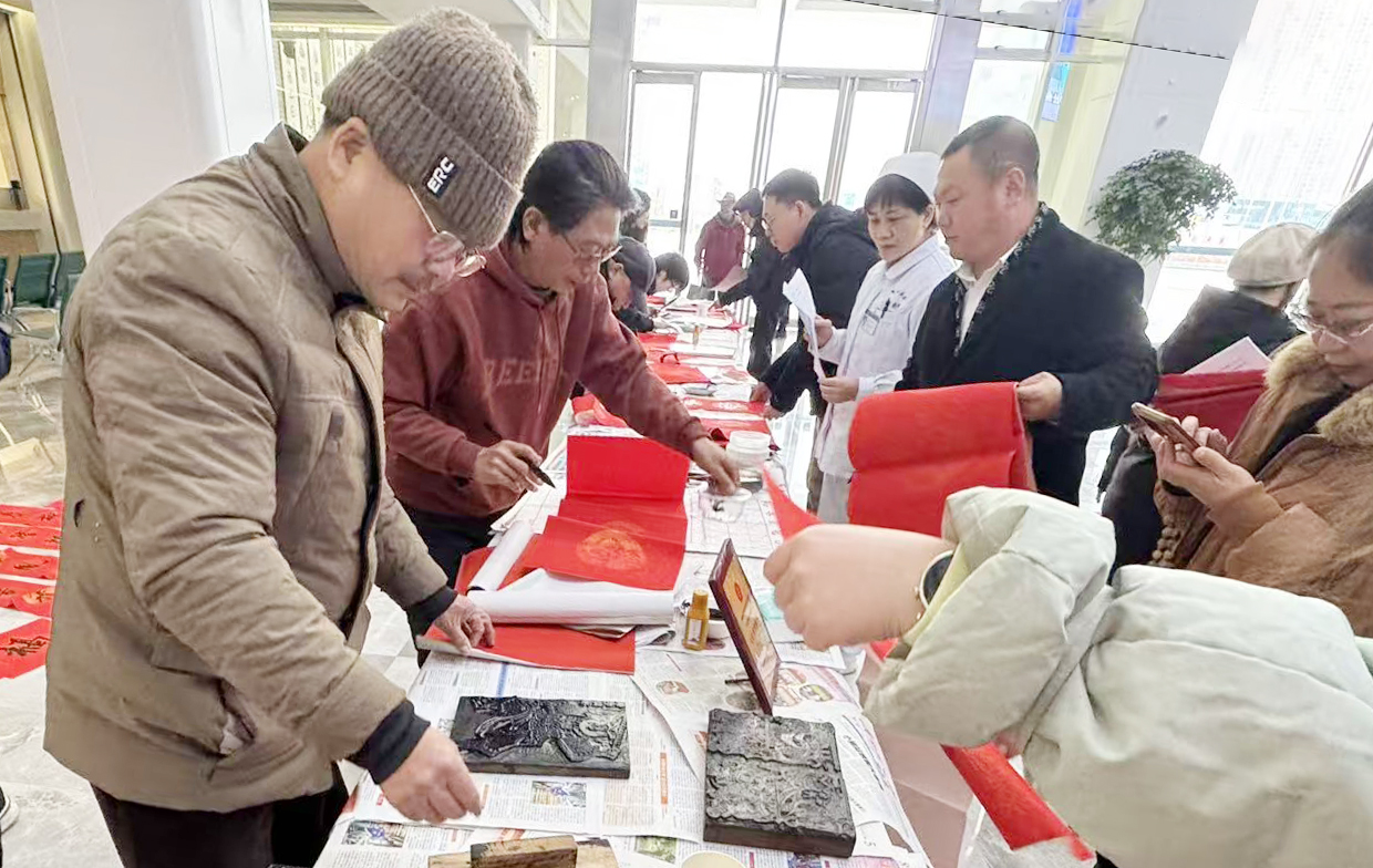 活动特邀桂林市中华文化促进会书画院院长李春毅、副院长王登华,自治区级非物质文化遗产代表性项目传承人申光宏等书法家,与医院由书法爱好者组成的志愿者齐聚一堂,挥毫泼墨,共迎农历新年。活动共创作并赠送手写春联200余副、“福”字200余个,分发印制年画100余幅。一幅幅寓意吉祥的作品,既融入了“骏马迎春”的生动意象,寓意医院在新的一年里龙马精神、奋发向前,也承载着对医务工作者、患者及家属的美好祝愿,将新春祝福与人文关怀传递到每个人心中。